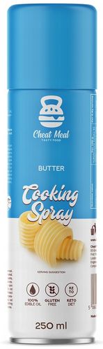 Cheat Meal Cooking Spray Masło w sprayu 250 ml jest doskonały do smażenia, grillowania, pieczenia, a nawet smażenia na patelni grillowej. Można używać go przy przygotowywaniu różnych potraw, od mięsa i ryb po warzywa i jajka.