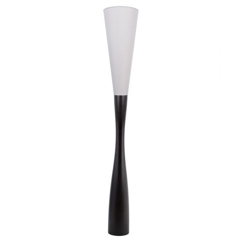 Oryginalna lampa podłogowa wykonana z naturalnego drzewa malowanego na czarno z szarym abażurem