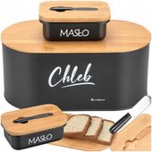 ⭐⭐CHLEBAK BAMBUSOWY DREWNIANY CZARNY METALOWY Z MASELNICZKĄ NOŻYKIEM DO MASŁA⭐⭐