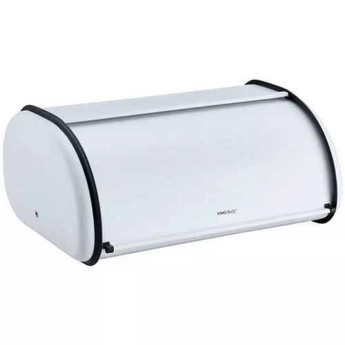 Duży pojemnik na pieczywo typu roll top wykonany z lakierowanej stali nierdzewnej w kolorze białym.