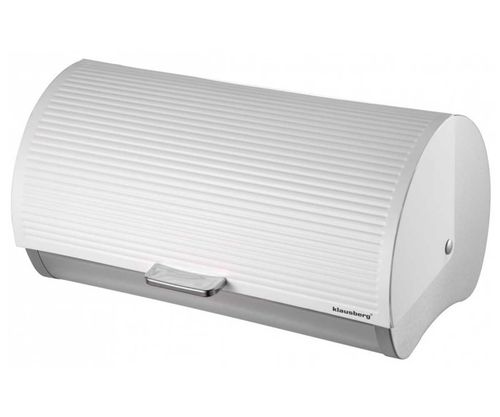 Chlebak ze stali węglowej w kolorze srebrnym. Pokrywa pokryta emalią w kolorze białym