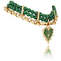 Pozłacany choker z malachitami Colibra by Sviatlana z kolekcji BELLA, z ręcznie malowanym, zielonym sercem, zdobionym kryształkami Preciosa. Długość chokera 30,0 cm + 10,0 cm przedłużki, dwa rzędy kamieni 1,60 cm , szerokość łańcuszka 0,9 cm. Wielkość serduszka ok 3,5cm x 3,5 cm. Waga naszyjnika 114.5 g.