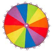 Wykonana z wytrzymałego i miękkiego materiału, chusta gwarantuje bezpieczeństwo i komfort podczas zabawy. Jej bogata, tęczowa kolorystyka przyciąga uwagę i wzbudza zainteresowanie, czyniąc zajęcia atrakcyjnymi dla wszystkich uczestników.