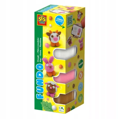 Ciasto FunDo - Zwierzęta hodowlane składa się z jasnych kolorów różu, bieli, brązu i pomarańczy z interaktywnym sposobem modelowania krowy, owcy i królika.Wykonanie szczegółowej figurki z ciasta może być nie lada wyzwaniem, ale zestaw FunDo jest precyzyjnie dostosowany do stworzenia 3 zabawnych figurek i zawiera poręczny patyczek do modelowania, instrukcję oraz kod QR z filmem instruktażowym krok po kroku. Ciasto jest klarowne, miękkie i można je łatwo wykorzystać ponownie dzięki zamykanym i poręcznym pojemnikom.