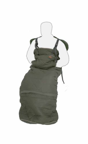 Ciepła pufa na mroźne zimowe noce, z bardzo wysoką sekcją na ramionach i paskami na ramię, boczny zamek błyskawiczny ułatwiający zakładanie.