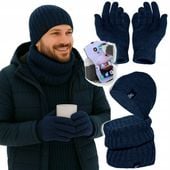 Wszystko uzupełnia uniwersalność rozmiaru i praktyczność. Komin o obwodzie 62 cm i wysokości 25 cm (lub 50 cm po rozłożeniu), czapka idealna na każdą głowę oraz rękawiczki o długości 24 cm, idealnie dopasowują się do męskiej dłoni. To więcej niż akcesoria – to klucz do stylowego, niezawodnego ciepła, dostosowany do Twoich unikalnych potrzeb i preferencji.