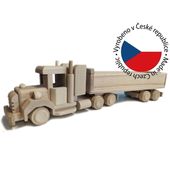 Ta dekoracyjna ciężarówka z litego drewna bukowego będzie służyć przez pokolenia. Wszystko jest precyzyjnie wykonane, drewno jest szlifowane, koła można obracać, przyczepę można ustawić.