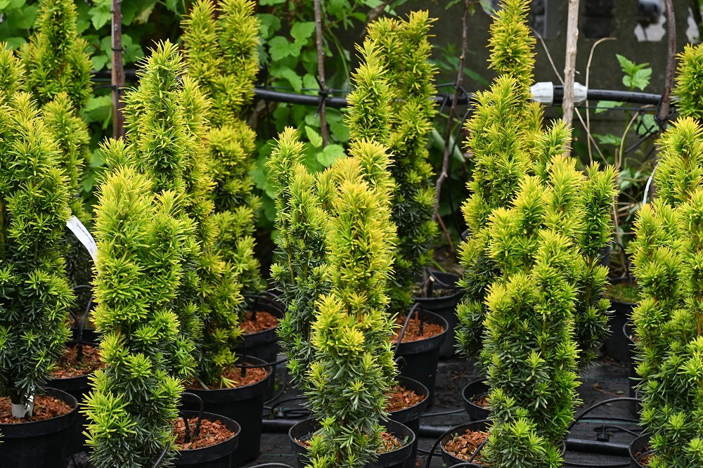 Przedstawiamy cis pospolity David, zimozielony krzew iglasty o wąskim, kolumnowym pokroju i wyrazistej złocisto-zielonej barwie igieł. Ta wyjątkowa odmiana została wyselekcjonowana w Holandii w drugiej połowie lat 80. XX wieku. Rośnie powoli, osiągając po wielu latach uprawy wysokość do 2 metrów i szerokość do 90 cm. Pędy są wzniesione, wyprostowane i niezwykle sztywne, co zapewnia im odporność na ciężar śniegu. Igły mają długość 2,5 cm i szerokość 3,5 mm – młode igły charakteryzują się cytrynowożółtym zabarwieniem z subtelnym, seledynowym paskiem pośrodku, podczas gdy starsze igły przybierają ciemnozielony kolor z żółtawymi brzegami.