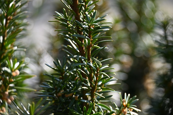 Ciemnozielone, błyszczące igły o długości 2-3 centymetrów wyrastają w sposób promienisty, nadając roślinie elegancki wygląd.