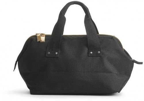 Stylowa torba termiczna w kolorze czarnym z dodatkami w kolorze złotym.