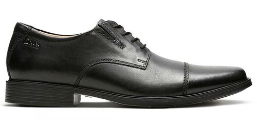 Postaw na klasykę i niezrównany styl z butami Clarks Tilden Cap. Te eleganckie półbuty męskie typu derby zostały zaprojektowane z myślą o mężczyznach, którzy potrzebują obuwia idealnego na oficjalne okazje, spotkania biznesowe czy uroczystości rodzinne. Wykonane z najwyższej jakości naturalnej skóry licowej, prezentują się niezwykle szykownie, a ich ponadczasowy czarny kolor sprawia, że pasują do każdego garnituru. Wyraźne przeszycie na nosku typu cap-toe nadaje im formalnego charakteru, podkreślając Twój profesjonalizm.