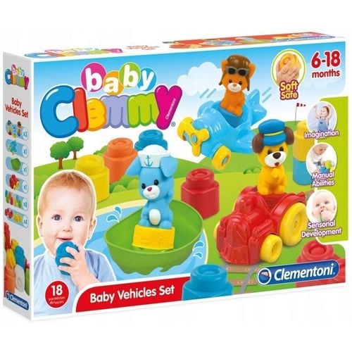 Uroczy zestaw do zabawy, który przybliży najmłodszym dzieciom świat zwierząt gospodarskich. Zawiera 3 sympatyczne, miękkie figurki zwierzątek, 3 "pojazdy" oraz 12 miękkich klocków Clemmy. Clemmy to klocki dla najmłodszych. Idealne do ćwiczenia podnoszenia, układania oraz zabawy. Klocki Clemmy są miękkie dzięki czemu są bezpieczne dla dzieci.