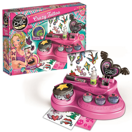 Zestaw zawiera samoprzylepne szablony, kolorowy brokat i barwnik z efektem świecenia w ciemności. Dla wszystkich szalonych dziewczyn jest też wiele fantastycznych tatuaży rzeczywistości rozszerzonej - dzięki aplikacji Crazy Tattoo, tatuaże magicznie stają się trójwymiarowe. Możesz je fotografować, personalizować, a przede wszystkim udostępniać znajomym za pośrednictwem kanałów społecznościowych!