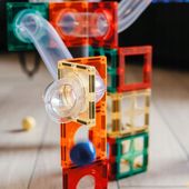 Kompletny 60-elementowy zestaw zawiera wszystkie komponenty niezbędne do budowy ekscytujących torów kulkowych - od prostych i giętych rurek, przez platformy, aż po 6 kulek i miskę. Twoje dziecko może realizować nieskończone pomysły architektoniczne i organizować emocjonujące wyścigi kulek.