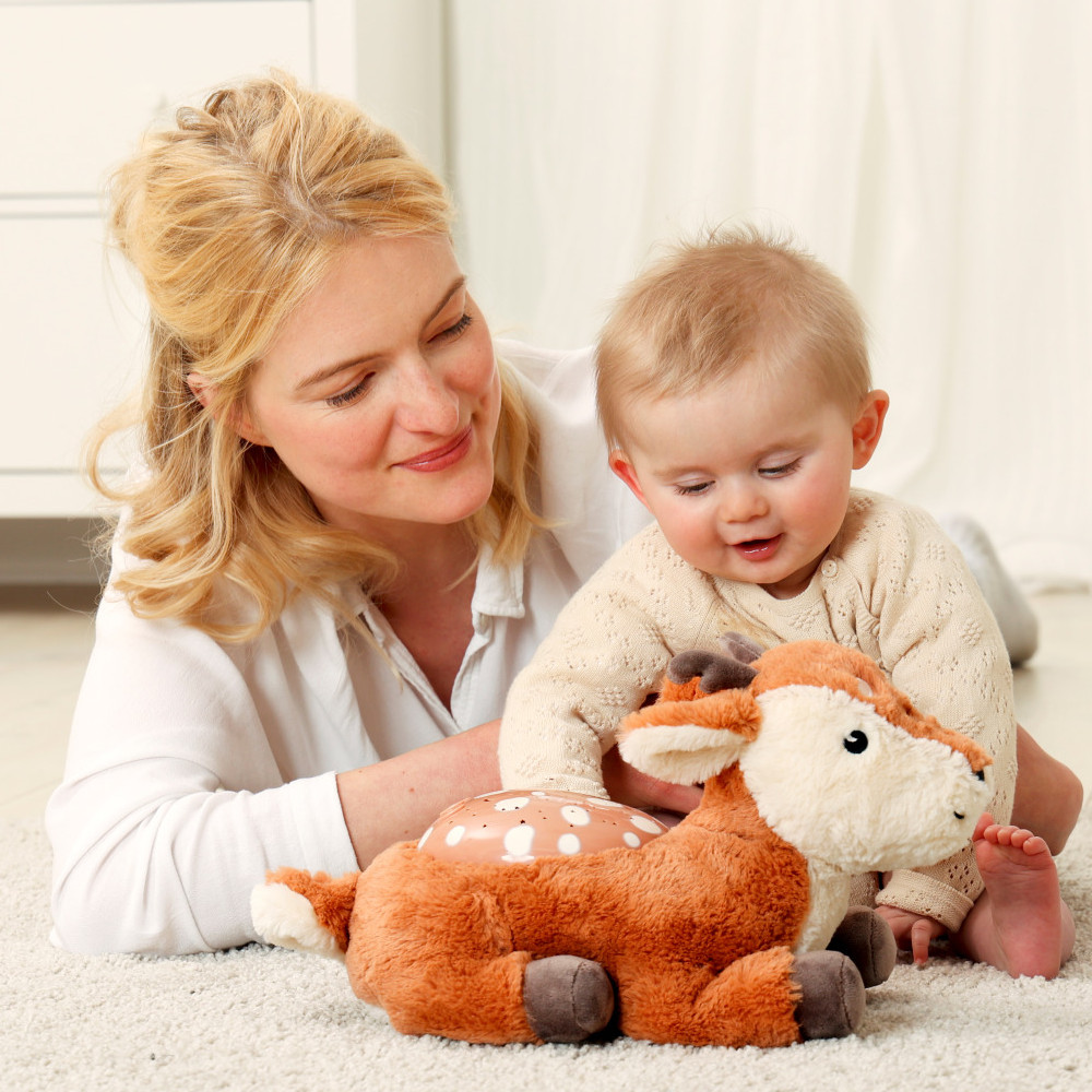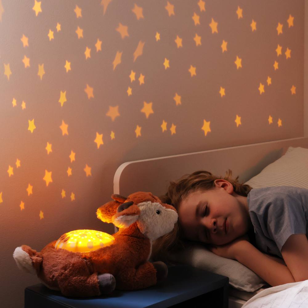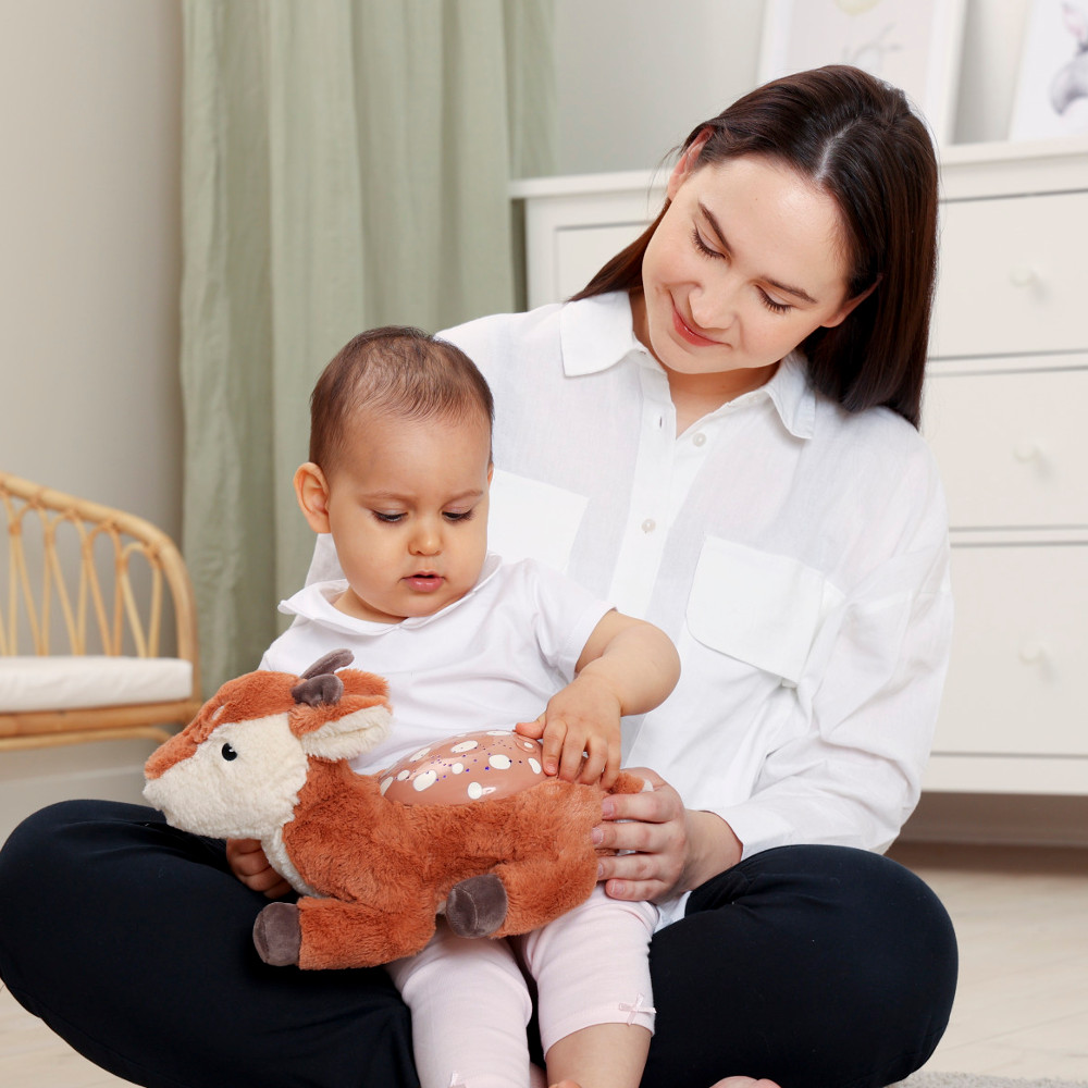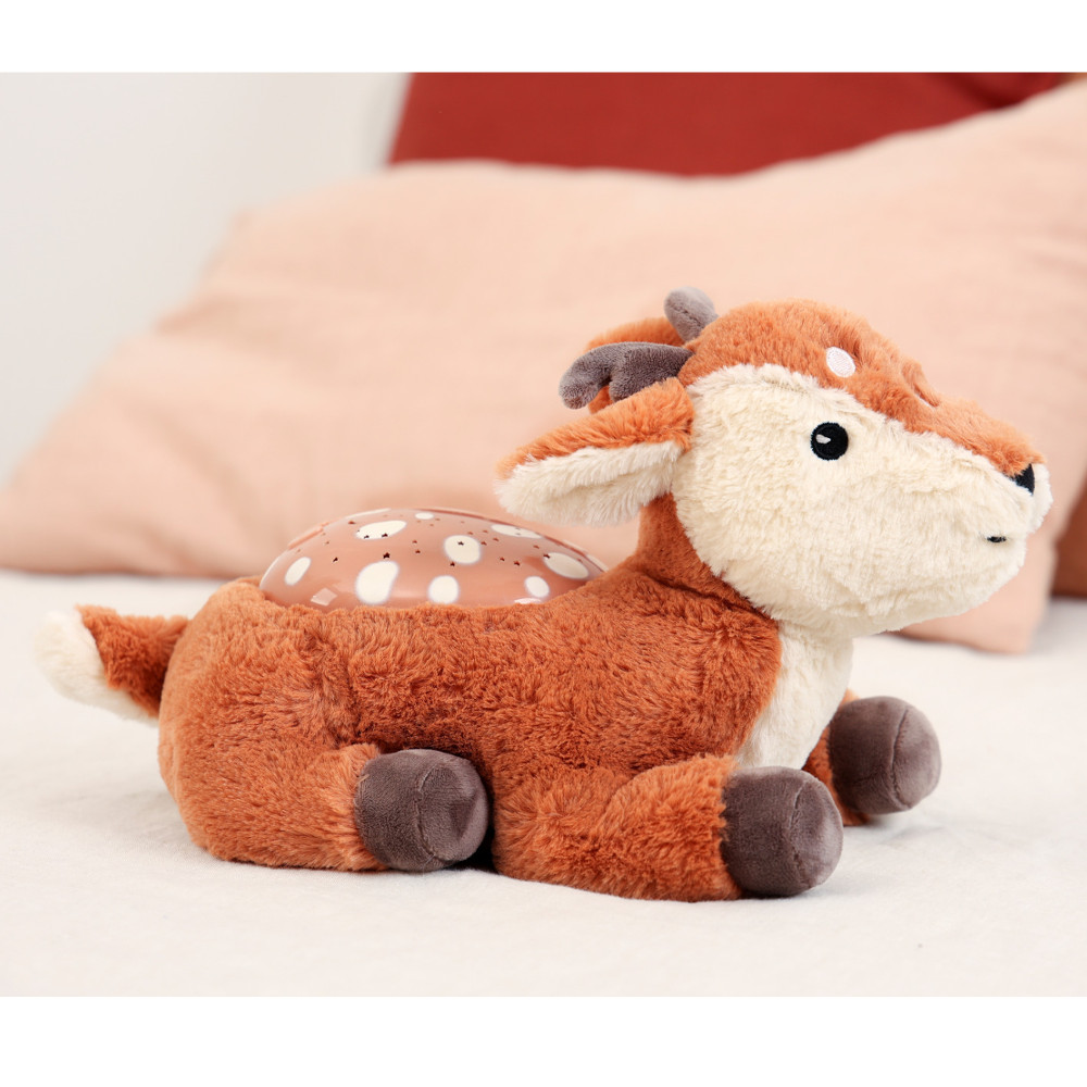 Pluszowy projektor - Sarenka, który może posłużyć jako lampka nocna. Twilight Buddies to niezwykle przytulni przyjaciele, którzy zmienią straszny, ciemny pokój w rozgwieżdżone prawdziwymi konstelacjami niebo na suficie i ścianach sypialni. W kojącej, gwiezdnej projekcji ukryty jest księżyc i trzy konstelacje! Zabawny, pluszowy kumpel w dzień i kojące światło w nocy. Twilight Buddies będzie jednym z najlepszych przyjaciół Twojego dziecka podczas zabawy, przed snem, zawsze i wszędzie