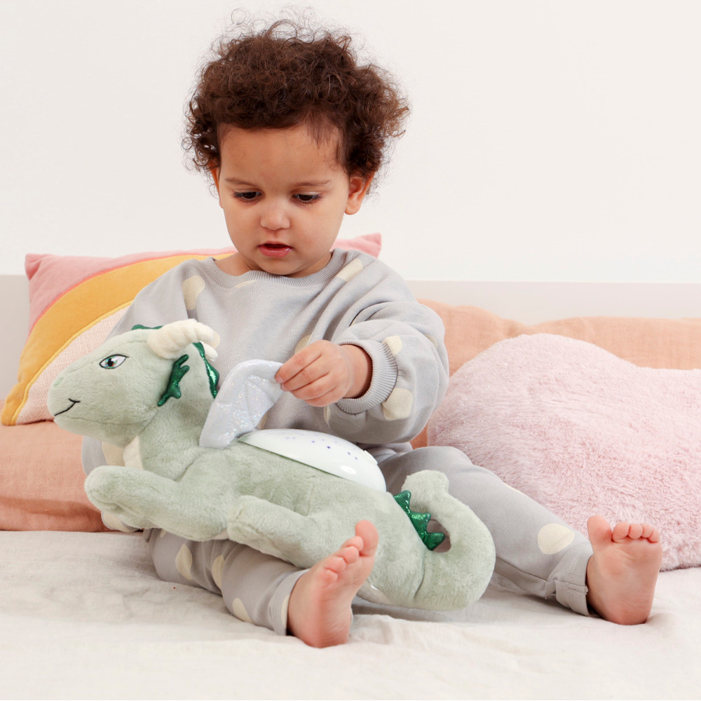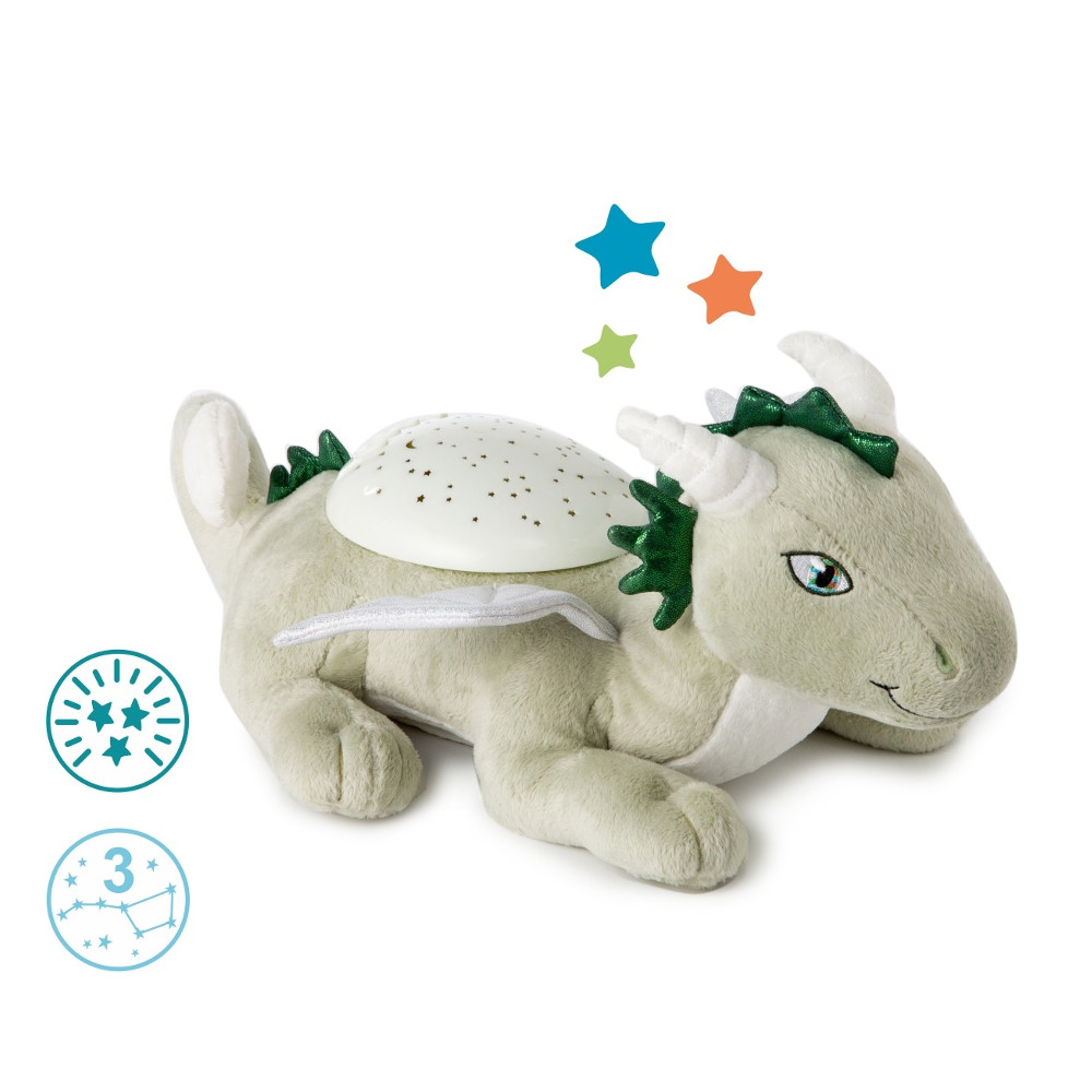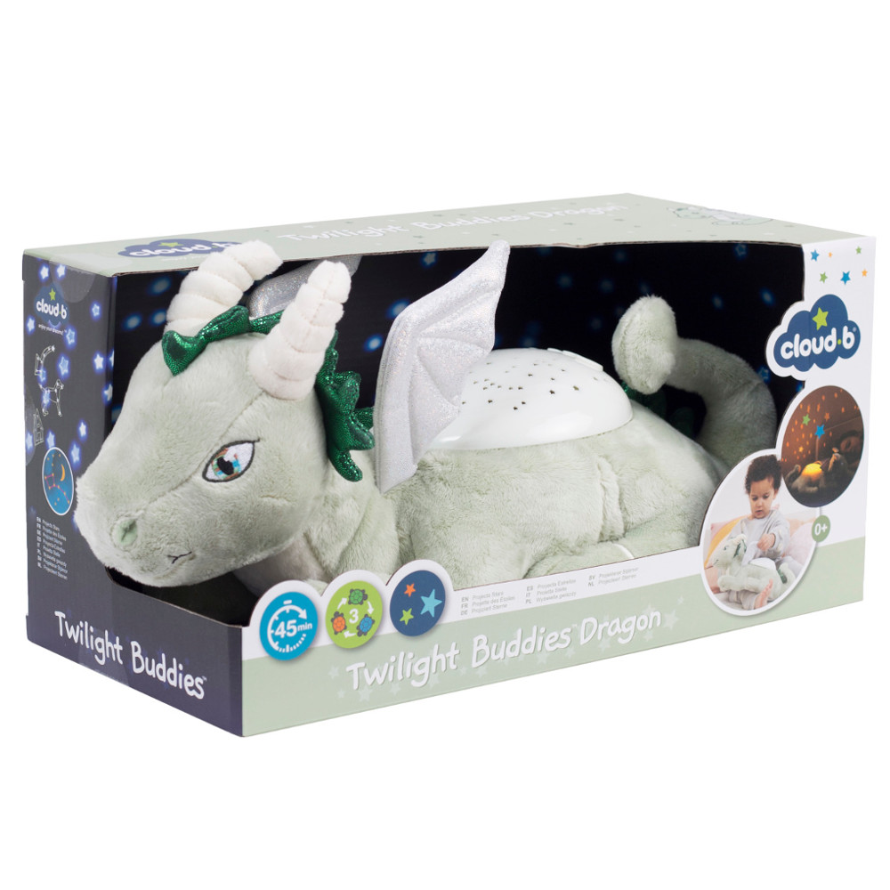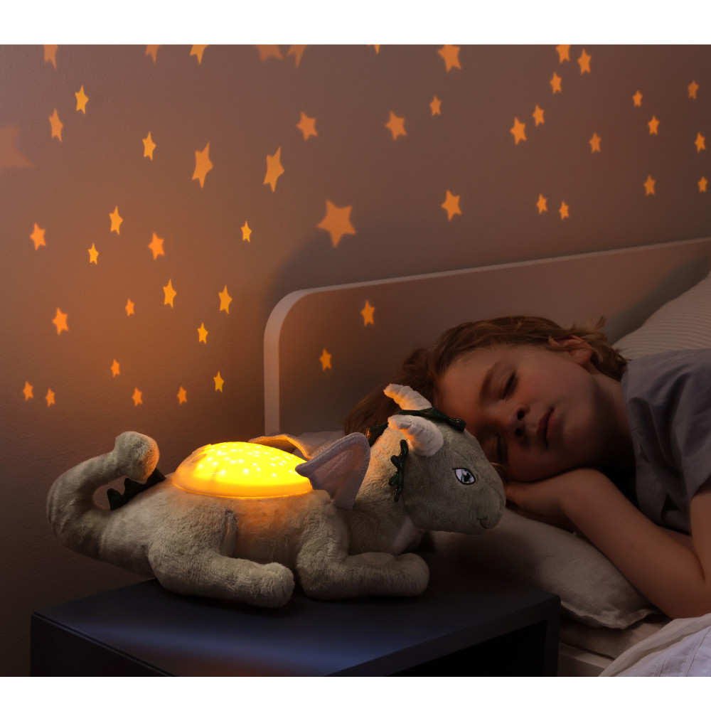 Pluszowy projektor - Smok, który może posłużyć jako lampka nocna. Twilight Buddies to niezwykle przytulni przyjaciele, którzy zmienią straszny, ciemny pokój w rozgwieżdżone prawdziwymi konstelacjami niebo na suficie i ścianach sypialni. W kojącej, gwiezdnej projekcji ukryty jest księżyc i trzy konstelacje! Zabawny, pluszowy kumpel w dzień i kojące światło w nocy. Twilight Buddies będzie jednym z najlepszych przyjaciół Twojego dziecka podczas zabawy, przed snem, zawsze i wszędzie