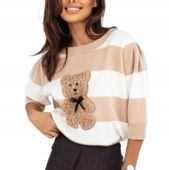 COCOMORE Sweter w Pasy MIŚ Bear Beżowy + Biały + Camel - Nowość!