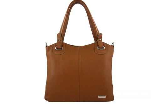 Codzienna duża torebka damska w kolorze brązowym jasnym jest wykonana ze skóry naturalnej licowej. W ofercie naszego sklepu z galanterią skórzaną Dla Niej i Dla Niego posiadamy szeroki wybór produktów z najwyższej jakości skóry licowej lub zamszowej, z subtelnymi dodatkami, w szerokiej palecie kolorystycznej. Oferowane przez nas produkty zaprojektowano tak, aby mieściły potrzebne rzeczy do pracy np. dokumenty, notatki, organizer lub notebook. Poręczne wewnętrzne lub zewnętrzne kieszenie doskonale uporządkują drobne rzeczy, np. klucze, portfel, telefon oraz kosmetyki. W najnowszej kolekcji torebek klasycznych mieszczących format A4 - codzienna duża torebka damska na wygodnej długości uchwytach na ramię. To propozycja dla Pań ceniących gustowne dodatki codziennej garderoby, zwracających uwagę na jakość i estetykę wykonania produktu ze skóry naturalnej. Gwarantujemy zadowolenie z zakupionych torebek oraz szybką wysyłkę Państwa zamówienia.