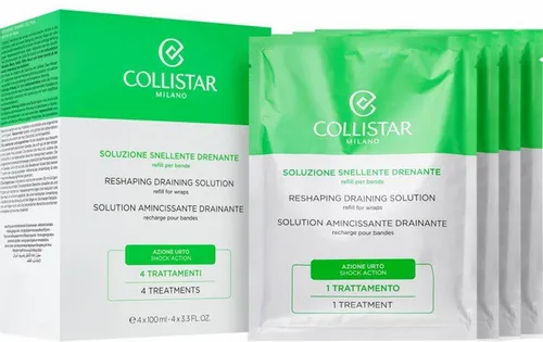 Collistar Reshaping Draining Solution Refill to Twój klucz do wysmuklenia i pięknego wyglądu, który przenosi profesjonalne kuracje prosto do Twojego domu. Zestaw składa się z czterech jednorazowych opakowań o pojemności 100ml, każdego nasączonego unikalnym roztworem, który drenuje i wygładza skórę już od pierwszego zastosowania.