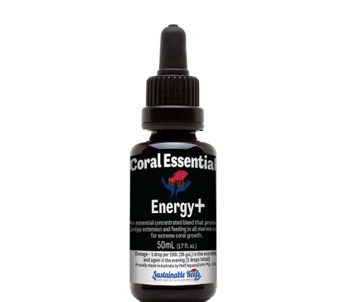 Coral Essentials, Energy+ to mieszanka rozpuszczalnych w tłuszczach, organicznych i syntetycznych związków. Zapewnia lepsze odżywianie i aktywną pomoc w przyswajaniu wapnia w celu zwiększenia wzrostu szkieletu koralowców. Energy+ pomaga koralom przyswajać aminokwasy i inne witaminy obecne w wodzie. Energy+ zapewnia życiową i ruchową reakcję koralowców, rozszerzenie polipów i znaczną poprawę aktywności żywieniowej. Nic tak nie wzmacnia zbiornika jak Energy+. Nadmiar energii+ niewykorzystany w zbiorniku jest usuwany poprzez standardowe procesy przetwarzania odpadów organicznych i odpienianie. Należy pamiętać, że ze względu na rozpuszczalny w tłuszczach charakter produktu może to mieć wpływ na działanie odpieniacza.