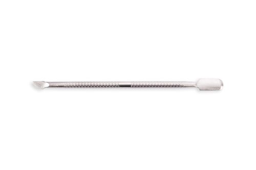 | Dwustronne kopytko – radełko przeznaczone do usuwania zalegającego na płytce naskórka lub usuwania lakierów hybrydowych z płytki paznokcia. Posiada dwa ostre zakończenia. Wyprofilowana i karbowana struktura rękojeści zapewnia komfort i precyzję pracy. Kopytko wykonane ze stali nierdzewnej, może być sterylizowane w autoklawie. | |