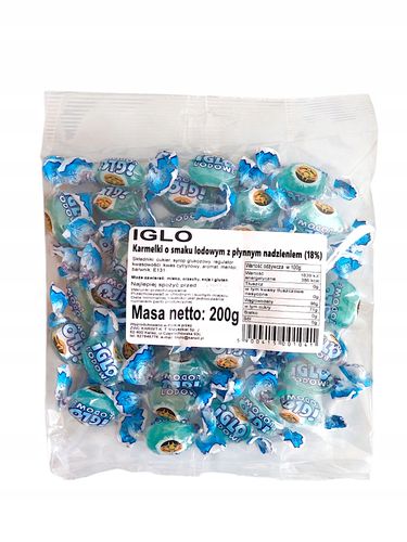 Składniki: cukier, syrop glukozowy, regulator kwasowości: aromat, mentol, barwnik: E131.