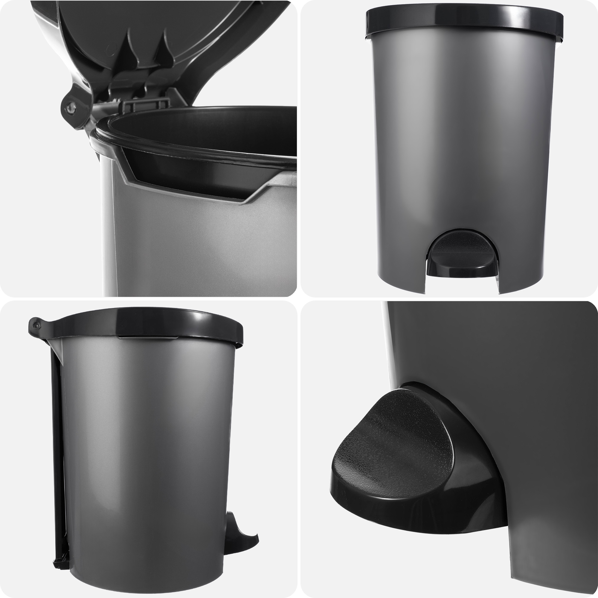 O dwóch rozmiarach – kosz na śmieci z pedałem dostępny jest w dwóch imponujących wariantach. Mniejszy z nich (32 x 28 x 36 centymetra) ma pojemność rzędu 15 litrów, z kolei większy (36 x 36 x 41 centymetrów) aż 25 litrów.