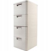 Ten wysokiej jakości regał Curver z 4 szufladami w kremowym odcieniu rattanu to nie tylko elegancki dodatek, ale także praktyczne rozwiązanie do przechowywania. Każda z 4 szuflad o pojemności 14L pozwala na uporządkowanie drobiazgów z niezrównaną wygodą, zapewniając stały dostęp do niezbędnych przedmiotów bez zbędnego chaosu.