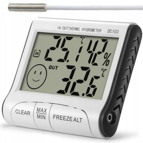 Produkt posiada czytelny wyświetlacz LCD, na którym przedstawione są wszystkie wartości. Dostępna jest funkcja zapamiętywania, a także odczytywania wartości najniższych i najwyższych w ciągu doby. Dodatkowo na ekranie wyświetla się również buźka, która sygnalizuje czy warunki panujące w pomieszczeniu są komfortowe czy nie. Możliwe jest formatowanie jednostek temperatury (stopnie C / stopnie F).