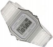 Klasyczny zegarek Casio F-91WS-7EF z srebrną kopertą i transparentnym paskiem łączy sportowy charakter z prostotą i niezawodnością, która sprawdza się w codziennym użytkowaniu. Wyposażony w mechanizm kwarcowy na baterię, ten model z kolekcji CASIO RETRO SPORT oferuje czytelny wyświetlacz cyfrowy, podświetlany diodą LED, zapewniając precyzyjne odczyty w każdej sytuacji.