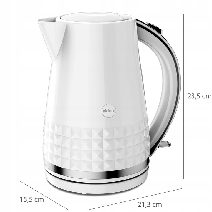 Czajnik Elektryczny Bezprzewodowy C270 Eldom 2150W to nie tylko niezawodny sprzęt kuchenny, ale także elegancki dodatek, który wzniesie Twoje doświadczenie gotowania na wyższy poziom. Ten nowoczesny czajnik, zaprojektowany w duchu DIAMOND COLLECTION, łączy w sobie wyjątkowy design z funkcjonalnością, czyniąc go idealnym wyborem dla osób ceniących estetykę i wydajność.