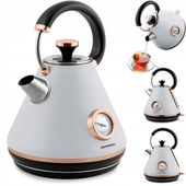 Obrotowa podstawa 360° umożliwia łatwe odstawianie zarówno dla osób prawo- jak i leworęcznych, a wyjmowany antywapienny metalowy filtr eliminuje osad, zachowując czystość napojów. Lekki, poręczny i z wskaźnikiem temperatury, ten czajnik to nie tylko urządzenie – to elegancki towarzysz codziennych chwil, pakowany w stylowy karton, idealny jako przemyślany prezent.