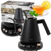 Ten wysokiej jakości czajnik elektryczny Adler AD 1349 LED z regulacją temperatury charakteryzuje się nie tylko eleganckim i stylowym wyglądem w czarnym i złotym wykończeniu, ale także wyjątkową precyzją. Posiada regulację temperatury od 40°C do 100°C co 5°C oraz funkcję podtrzymania ciepła do 120 minut, które idealnie dostosowują się do różnych potrzeb parzenia herbaty, kawy czy innych napojów, zapewniając zawsze optymalne rezultaty.