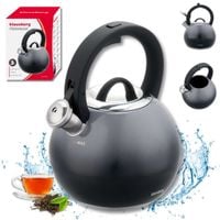 Klausberg KB-7955 to elegancki czajnik o modernistycznym, lekko kulistym kształcie i efektownym grafitowym połysku. Wykonany ze stali nierdzewnej oraz wyposażony w bezpieczny uchwyt, gwizdek otwierany przyciskiem i dno kapsułowe, oferuje połączenie stylu, funkcjonalności i trwałości. Duża pojemność 3 litrów sprawia, że świetnie sprawdza się zarówno w domu, jak i w biurze czy gastronomii.