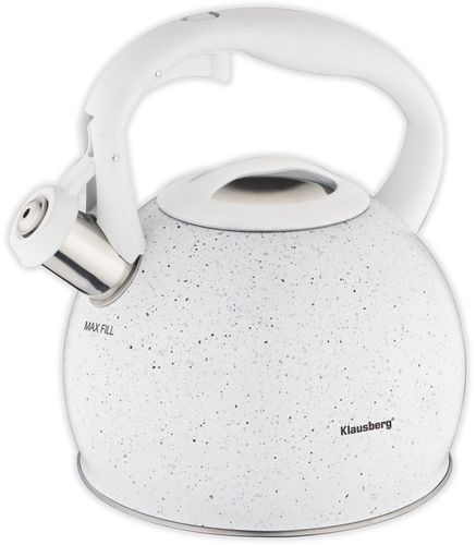 Czajnik wykonany jest ze stali nierdzewnej pokrytej powłoką marmurową w kolorze białym,