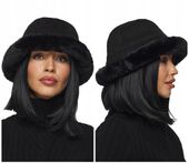 Ta wyjątkowa czapka damska typu bucket hat w kolorze czarnym wyróżnia się precyzyjnym wykonaniem z materiału imitującego zamsz oraz delikatnego sztucznego futerka. Model dwustronny pozwala na łatwą zmianę wyglądu, idealnie uzupełniając jesienno-zimowe outfity o subtelny, luksusowy akcent, który przetrwa codzienne wyzwania mody.