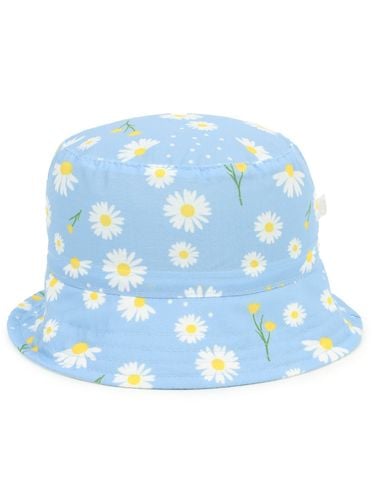 Dziewczęcy kapelusz letni w kolorze niebieskim. Na całości motyw uroczych stokrotek. Z tyłu znajduje się wszyty gumowy ściągacz, który ułatwia dopasowanie czapeczki do główki dziecka.