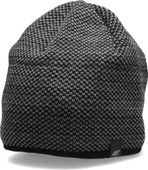 Czapka męska marki 4F w kolorze ciemno szarym. Posiada niewielką naszywkę z logo producenta. Uszyta została z akrylu i wełny, dzięki czemu jest miła w dotyku, ciepła i nie uciska. Jest elastyczna przez co dobrze dopasowuje się do głowy. Od wewnątrz została podszyta ciepłym polarem. Idealna na chłodniejsze dni.