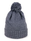 Zimowa czapka dla chłopca w kolorze ciemnoszarym. O grubszym, mięsistym splocie. Na górze znajduje się milutki pompon z frędzli. Zakończona ściągaczowym wywinięciem. Czapka jest jednowarstwowa, bez podszewki w środku.