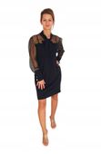 Elegancka sukienka o luźniejszym fasonie. Rękawy wykonane z ozdobnej siateczki i wiązanie przy dekolcie dodają szyku i elegancji. Prosty fason daje wiele możliwości przy doborze ciekawych dodatków. Dzięki przyjemnemu materiałowi sukienka jest niesamowicie wygodna i praktyczna. Z pewnością będzie idealnym wyborem na okazjonalne wyjścia np. randkę, obiad rodzinny, bądź wyjście sylwestrowe.