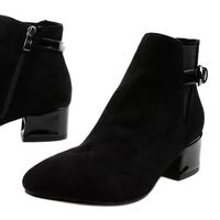 Czarne, prześliczne eleganckie botki dla każdej kobiety, która chce się poczuć wyjątkowo i pięknie. Buty wykonane są z zamszowej skóry ekologicznej, z zaokrąglonym noskiem, lakierowanym słupkiem, a dodatkowym ich atutem jest to, że są ocieplane, tak więc doskonale sprawdzą się w okresie jesienno - zimowym.