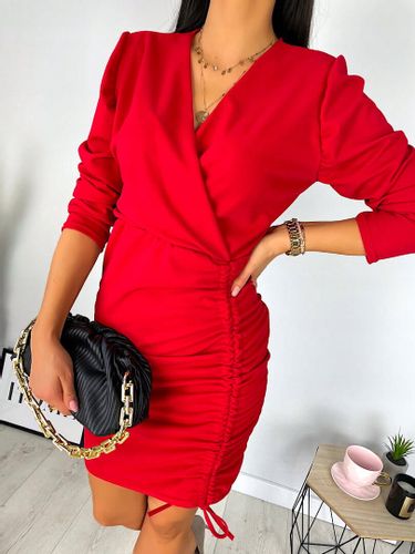 Modna sukienka która sprawdzi się w wielu stylizacjach. Kopertowy dekolt pięknie wyeksponuje szyję, a gumeczka wszyta w talii podkreśli atuty sylwetki. Ściągacz z boku sprawia, że wygląda ona niezwykle efektownie. Średniej grubości materiał powoduje, że jest ona niezwykle wygodna i praktyczna. To bardzo dobry wybór na spotkanie rodzinne, randkę czy też do pracy.