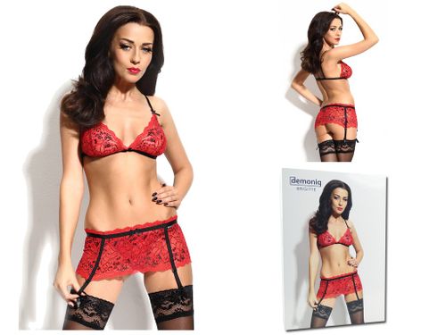 Nie zwlekaj i dodaj do swojego koszyka czerwony komplet bielizny - pas do pończoch i biustonosz L już dziś! Poczuj magię kobiecości i olśnij swojego partnera!