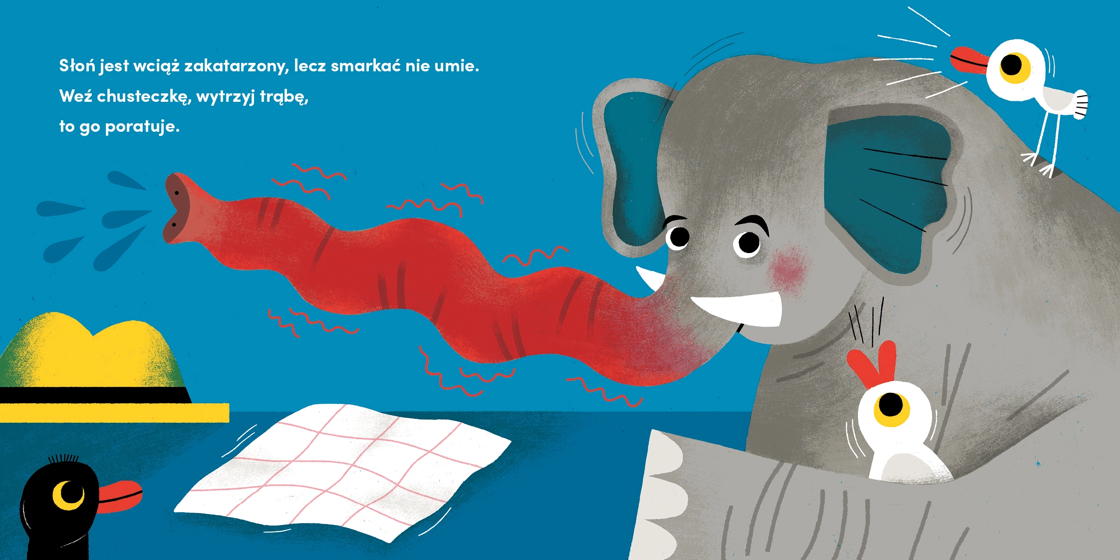 Przyklej plasterek króliczkowi, pomóż znaleźć pieskowi piłeczkę i umyj zęby lwa! Cześć i czołem. Góra dołem! to brawurowo zrymowana i zilustrowana kartonowa książka dla najmłodszych, która zaprasza do wspólnej zabawy podczas czytania i angażuje w niesienie pomocy małym przyjaciołom. Hej, jak masz na imię? Cześć i czołem! Zajmij się naszym zwierzęcym zespołem!