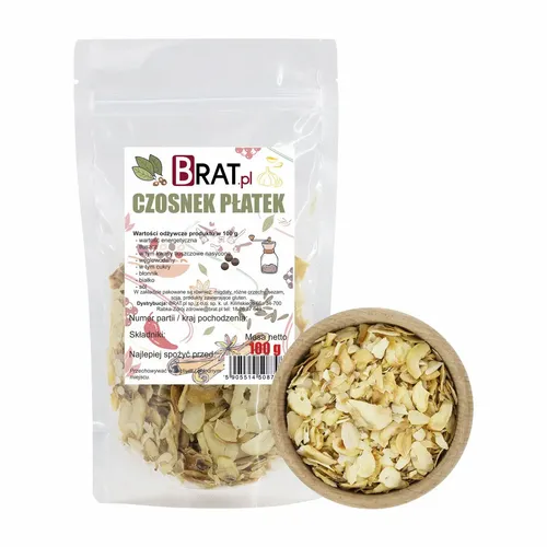 Czosnek suszony w płatkach to aromatyczna przyprawa, która nadaje potrawom intensywnego smaku i wyjątkowego aromatu. Płatki czosnku są wygodne w użyciu, nie tracą swoich właściwości podczas przechowywania i doskonale nadają się jako zamiennik świeżego czosnku w każdej kuchni. Mają charakterystyczny, lekko ostry smak, który świetnie komponuje się z różnymi daniami, od zup po mięsa.
