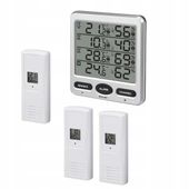 Dołączone 3 czujniki zewnętrzne przesyłają swoje dane pomiarowe drogą radiową do stacji bazowej.