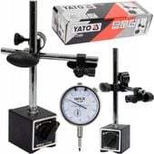 Ten profesjonalny zestaw YT-72460 + YT-72450 wyróżnia się solidną konstrukcją statywu magnetycznego z przegubem sprężystym, umożliwiającym dokładne pozycjonowanie czujnika zegarowego na mierzonym elemencie. Centralne blokowanie pokrętłem jednocześnie środkowego i górnego przegubu zapewnia niezawodne ustawienie, a podstawa z rowkiem pryzmatycznym od spodu gwarantuje stabilność w precyzyjnych zadaniach warsztatowych.
