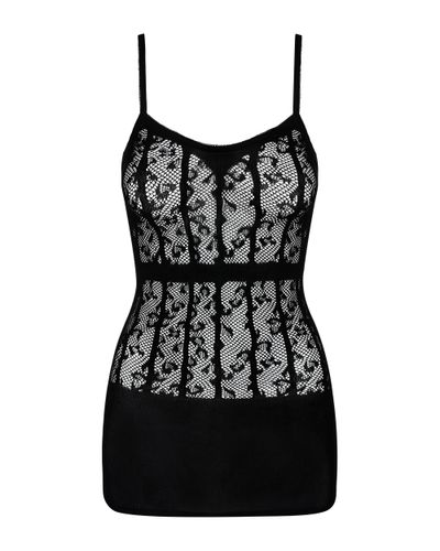 Sukienka Obsessive D605 – nietypowa „mała czarna” dla odważnych. Całkowicie bezszwowa sukienka na ramiączkach wykonana jest z bardzo elastycznego i miękkiego w dotyku materiału. D605 sięgająca tuż za pośladki idealnie eksponuje kobiecy kształt i zgrabne nogi. Górna część sukienki wykonana jest z prześwitującej dzianiny ozdobionej zwierzęcym motywem. Symetryczny układ pionowych pasków optycznie wysmukla sylwetkę. Jednolity dół kusząco opina pośladki. Sukienka Obsessive D605 prezentuje się najlepiej na kobietach o nieco pełniejszym kształcie. W składzie materiału znajdziemy 90% nylon, 10% elastan.