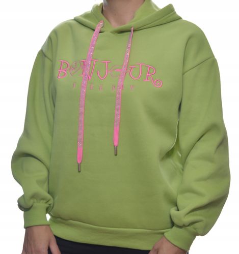 Uniwersalny rozmiar sprawia, że jest odpowiednia dla każdej kobiety, a piękny zielony kolor doda Ci świeżości i oryginalności. Z haftowanym napisem BONJOUR FREE DAY, ta bluza jest nie tylko modna, ale również pełna pozytywnej energii i luzu, co podkreśli Twój indywidualny styl.