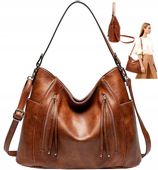 ✅ Torebka można nosić za rączkę lub na ramieniu, posiada pasek z regulacją długości